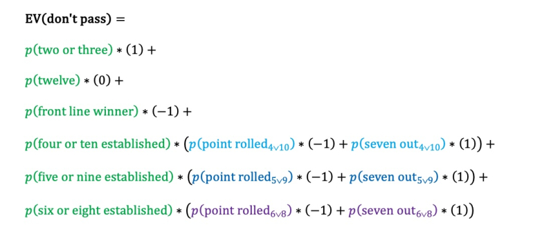 The expected value for the Don't Pass is easily derived from the Pass Line equation: