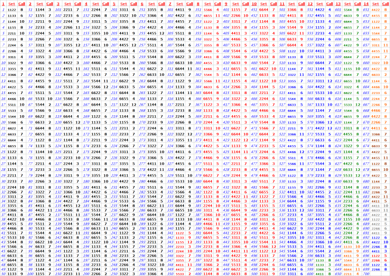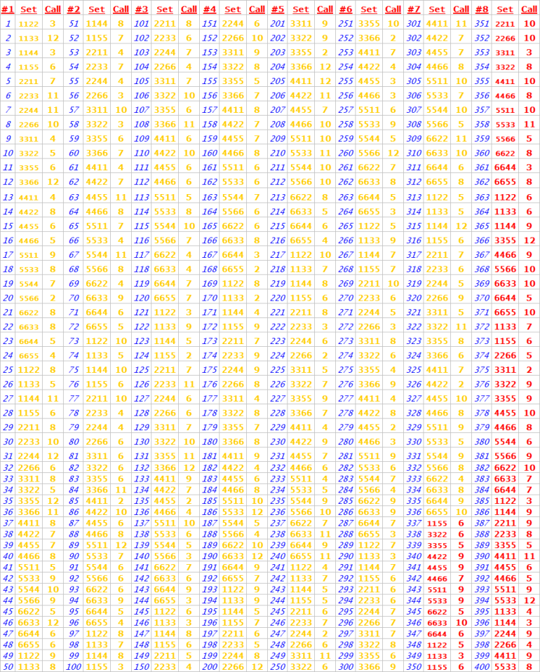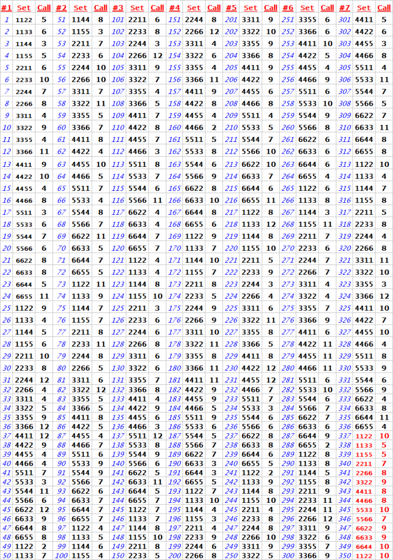 Most commonly used sets include: 2211, 1155, 5544, 3322, 4466 – popular sets among controlled shooters targeting different numbers (e.g., Hardways set, V-3, 3-V, etc.).