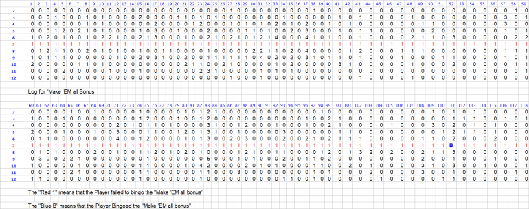 This means the odds of hitting the Make 'Em All bonus in 700 rolls are still very, very small, and 1 in 1,400 rolls is a reasonable estimate for getting it once.