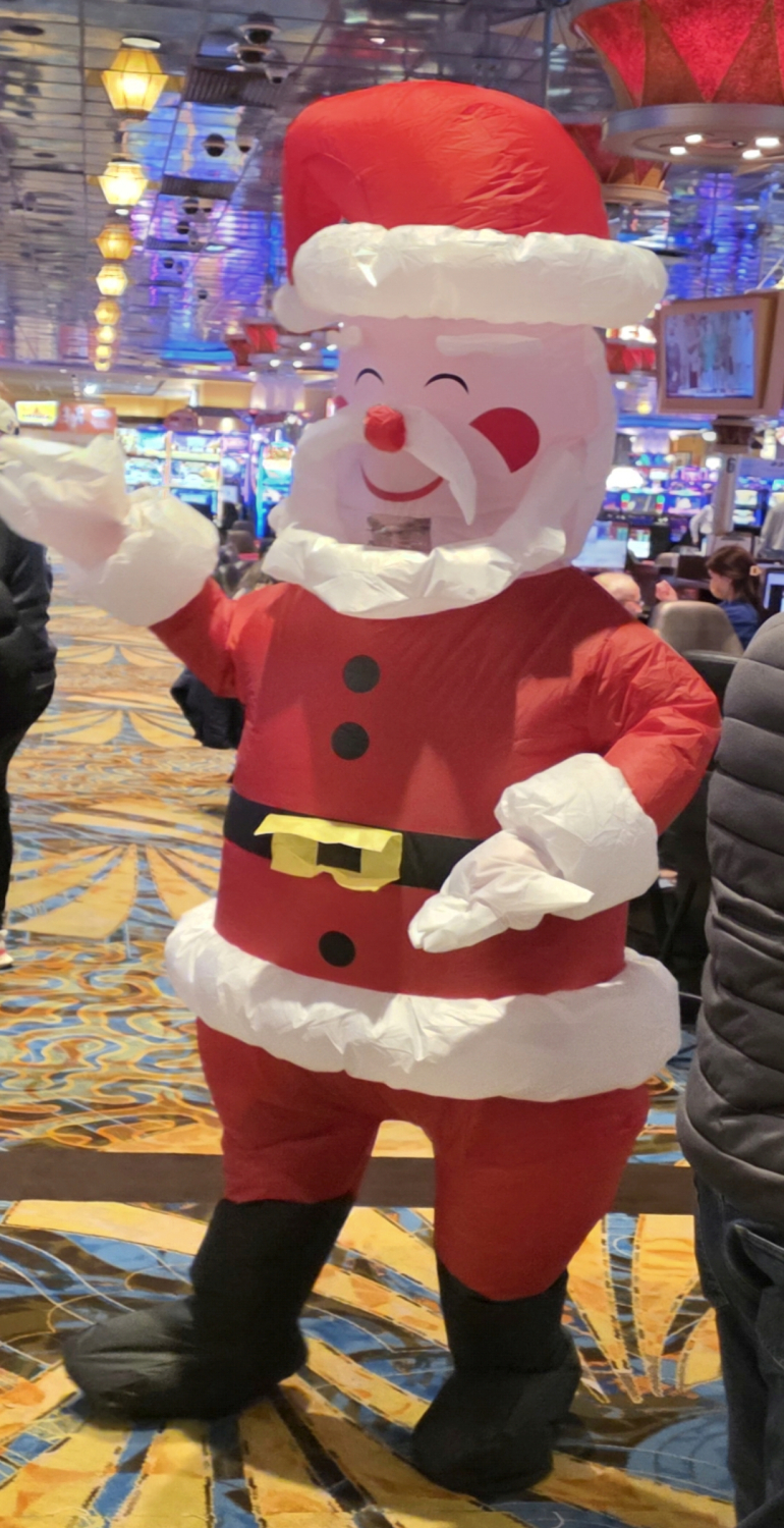 In the spirit of Christmas, a craps stickman dressed up as Santa Claus.This casino clearly has friendly, player-focused management. They allow the stickman to entertain shooters and keep the game fun and welcoming.