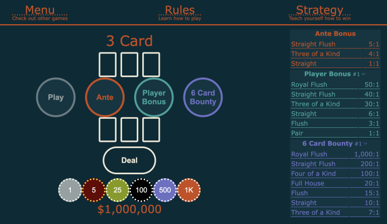 Let me show you my Three Card Prime demo for example. You can play any version of any side bet, learn the RTP, and get told by the website if you are playing/folding sub-optimally. You can also read the rules and the strategy on the page, rather than being linked to the Wizard of Odds or one of my other websites.