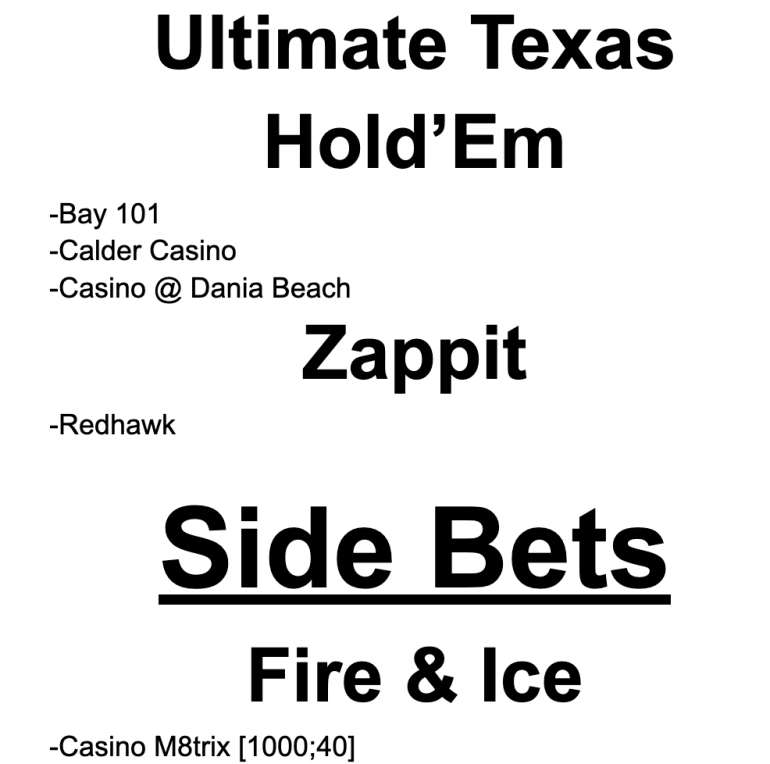 Good question and it creates an opportunity for me to clarify an old assumption. I've seen the same game (like Ultimate Hold'em) at various casinos and there are different side bet options and bet limits. Where the side bets differ, the payout tables and bet limits seem to be different, too.