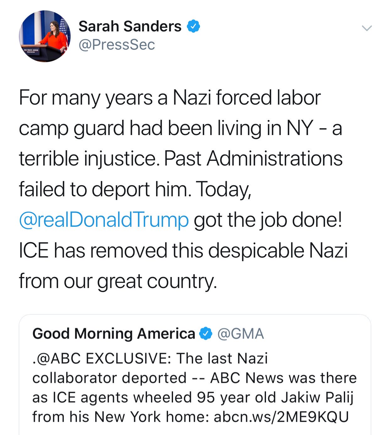 Careful, Sarah! Deporting Nazis will upset a large part of Trump’s base...