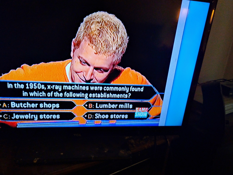 I remember those when I was in first and second grade in the mid fifties, you stuck your foot in the machine and it took an x-ray of your foot. And exposed the people who worked there to x-rays all day long.