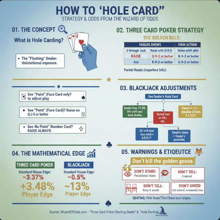 Quote: HunterhillNo offense Darkoz but I speak from experience and as far as I know your experience is with running cards. I can tell you that hitting those hands you won’t last long.Quote: darkozQuote: HunterhillIt’s the correct strategy but my point was see how long you last if you hit hard 17,18,or 19 when you know the dealer has you beat.Quote: DRichQuote: HunterhillThis is where Ai could cause trouble. Following the rules for blackjack. If dealer has 17-20 it says hit until you beat the dealer. Try that strategy and see how long you last before getting picked off.Quote: rxwineSO, my prompt was for the Ai to use the “Wizard of Odds” site to do a “colorful” infographic on “hole carding”. The agent searched out the site and did all the work. I did no corrections or additions.