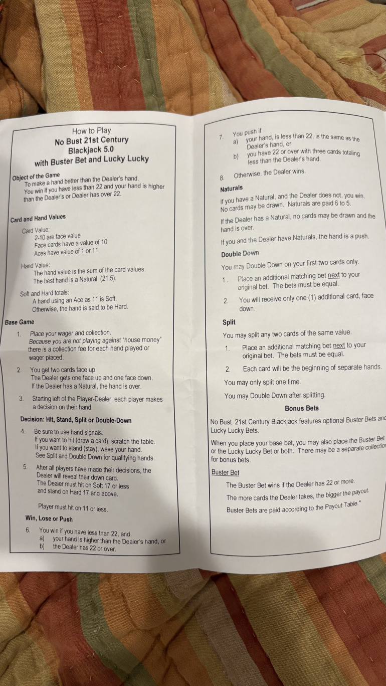 For those wondering, blackjack pays 6:5, DAS, H17, and 3 decks. They have games with more than 3 decks too.